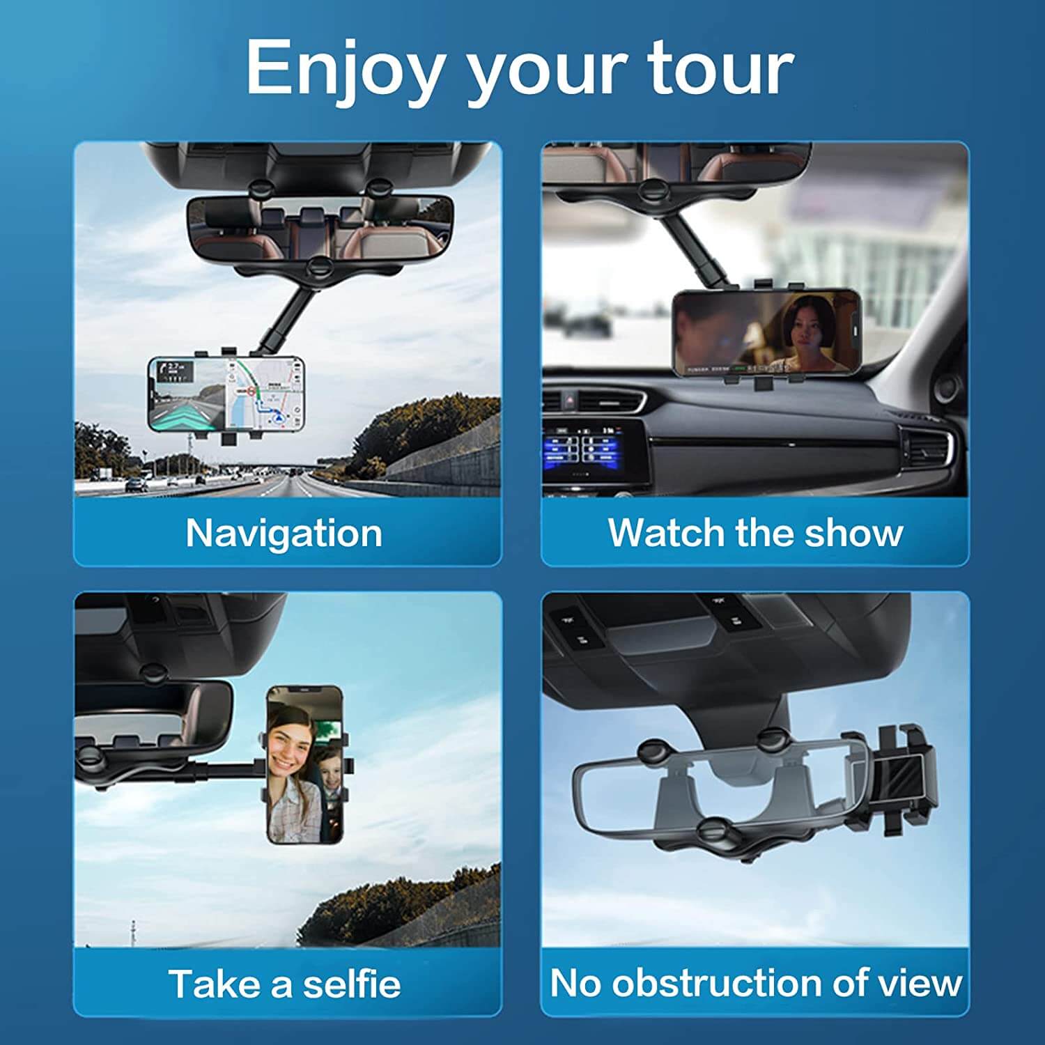 Setting 360 Mount™ on your rear view mirror is an automatic & hands-free way to turn fumbling your phone on car trips into a seamlessly effecient & safe trip.